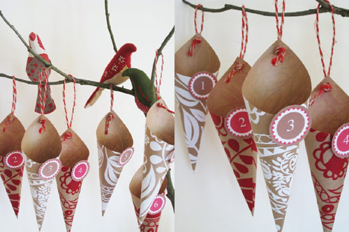 Ten kalendarz wymaga sporego nakładu czasu i umiejętności, ale sprawi radość każdemu dziecku. W kiszonkach pod choinką pochowane są różne ozdoby, każdego dnia dziecko wyjmuje jedną i zawiesza na drzewku, tak, że 24 grudnia cała choineczka jest już ubrana.