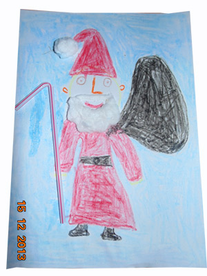 Mama napisała: Autorem pracy jest debiutujący przedszkolak o imieniu Julia,która 7.12.skończyła 4 latka :) Julia bardzo lubi malować, rysować, więc jeśli chodzi o pracę, to miała 100 pomysłów na jej wykonanie. Uwielbia Mikołaja, bo uważa,że jest bardzo dobry i kochany, a to dlatego bo On kocha wszystkie dzieci na całym świecie.