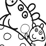Kolorowanki do wydruku - zabawy dla dzieci do druku - Świnka Peppa i jej brat Georg, jej rodzice i przyjaciele